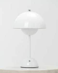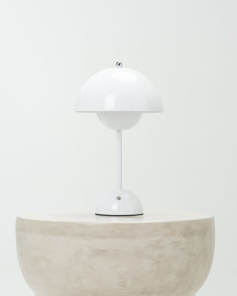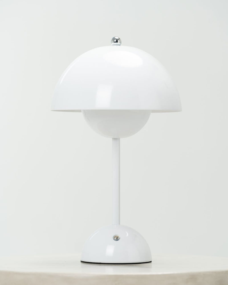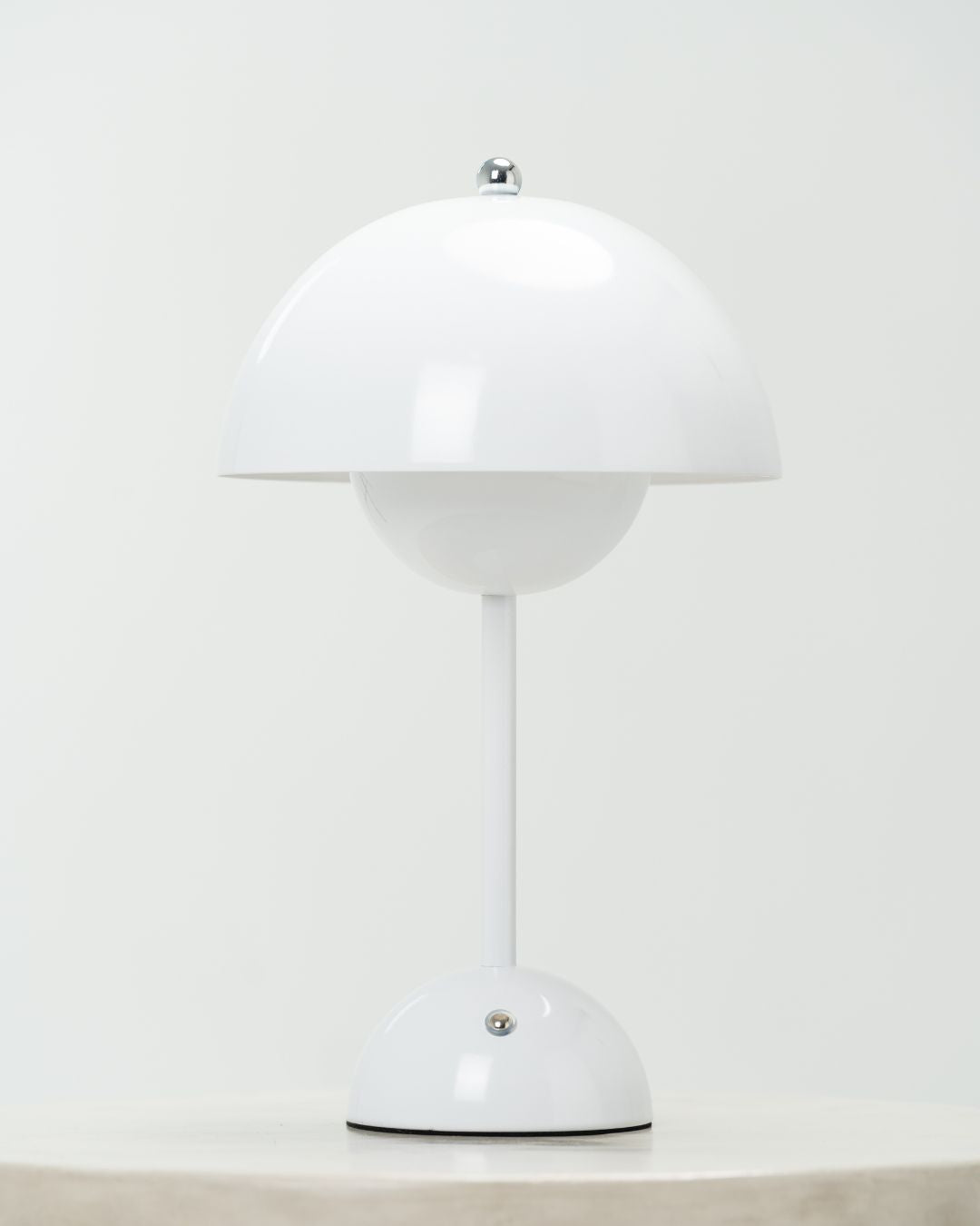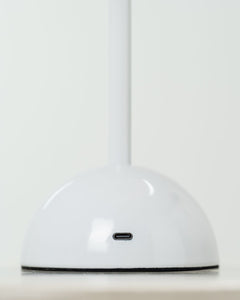 Lampara metalica con acabado en pintura en polvo. Luz blanca, luz calida y luz neutra. Accionamiento touch. Recargable con USB C.